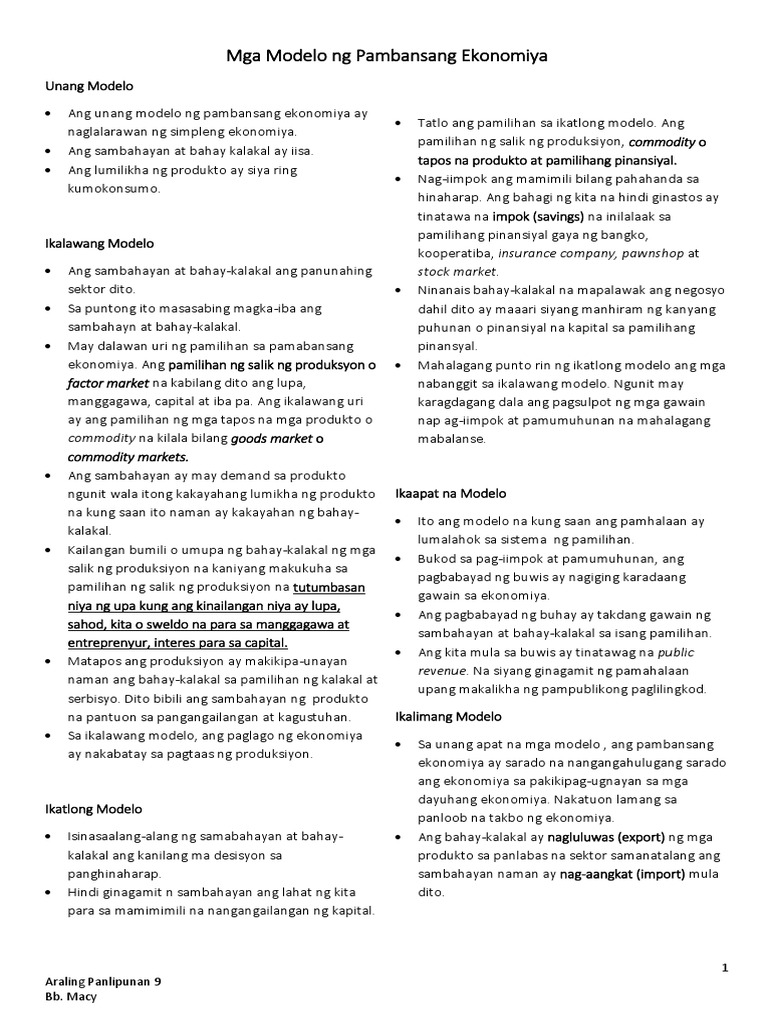 Mga Modelo Ng Pambansang Ekonomiya Pdf