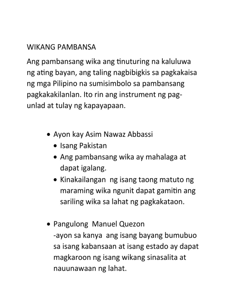 Batayan ng Wikang Pambansa Kumbensiyong Konstitusyonal 1934. To maintain this website we need your help. WIKA at KULTURA Walang makapagpapakilala sa isang kultura kundi ang nalikha nito sa sariling wika.