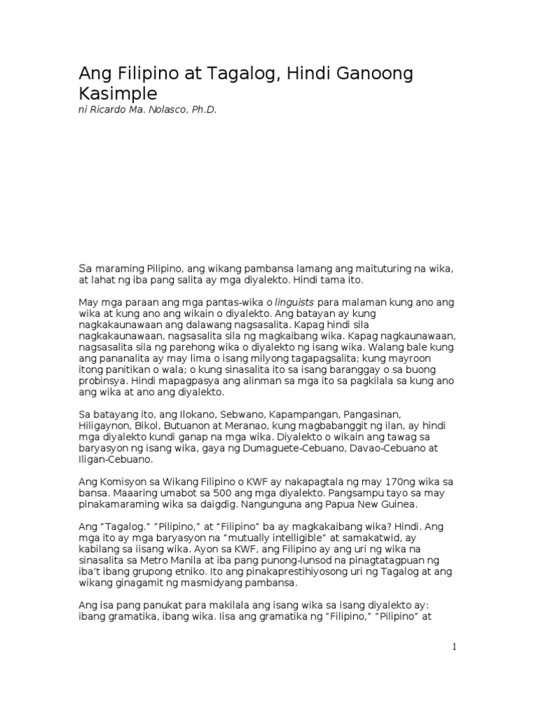 Di ito nahahati sa mas maliit na wika 2. 1 WIKANG TAGALOG Ang Tagalog ay isang wikang natural. E Language Planning and Policy Research.
