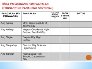 Lizette Mangilin proved their skills in technology as they top at the Pasiklaban sa Pidabs 2014 Eliminations Phase. Pgkakaiba ng Pahayagang Pangkampus at Pahayagang Pambansa Kahulugan Isang pahayagan na isinulat at nai-publish ng mga mag-aaral sa isang paaralan Ang isang pang-araw-araw na pahayagan na inilunsad na may layunin ng intermediate na pag-edit ng malaking pahayagan at ng maliit na pahayagan. Natuturuan sila ng wastong pagbasa ng mga pahayagn at ng mga aklat.