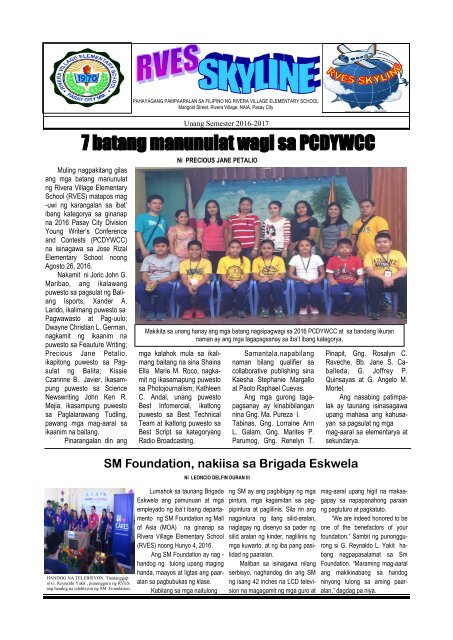 They were awarded as the Over-All Champion at the SunStar Mall Sta Cruz Laguna last January 15. May eksema sa kamay c. Ang Pahayagang Pampaaralan sa Pilipino sa Sangay ng mga Paaralang Lungsod ng Maynila isang pag-aaral ng mga suliranin ng mga tagapayo ng mga pahayagang pampaaralan sa Pilipino sa sangay ng mga paaralang lungsod ng Maynila 1977.